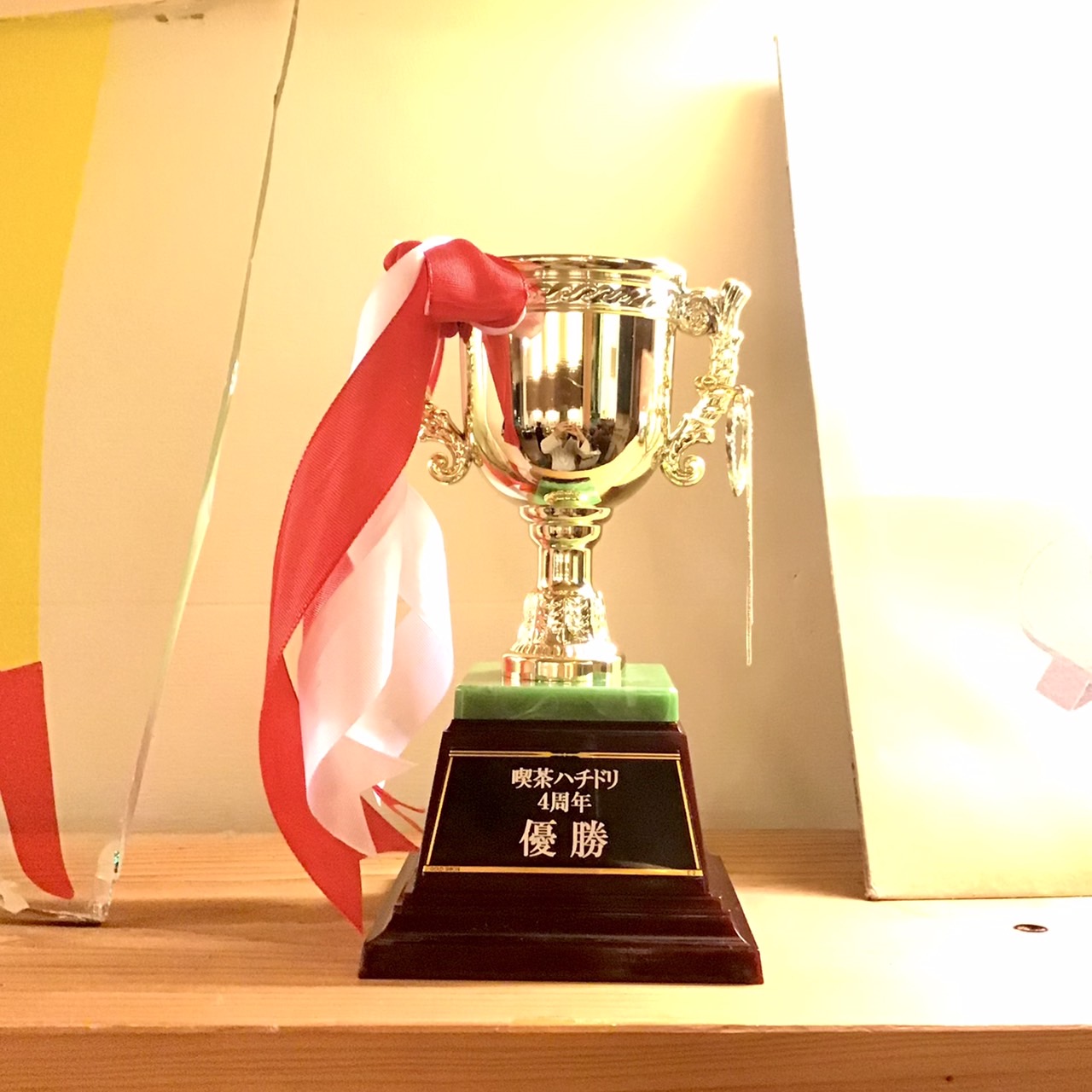このトロフィーは、喫茶ハチドリ4周年のお祝いにおねだりをしてプレゼントして頂いた思い出のトロフィーです。