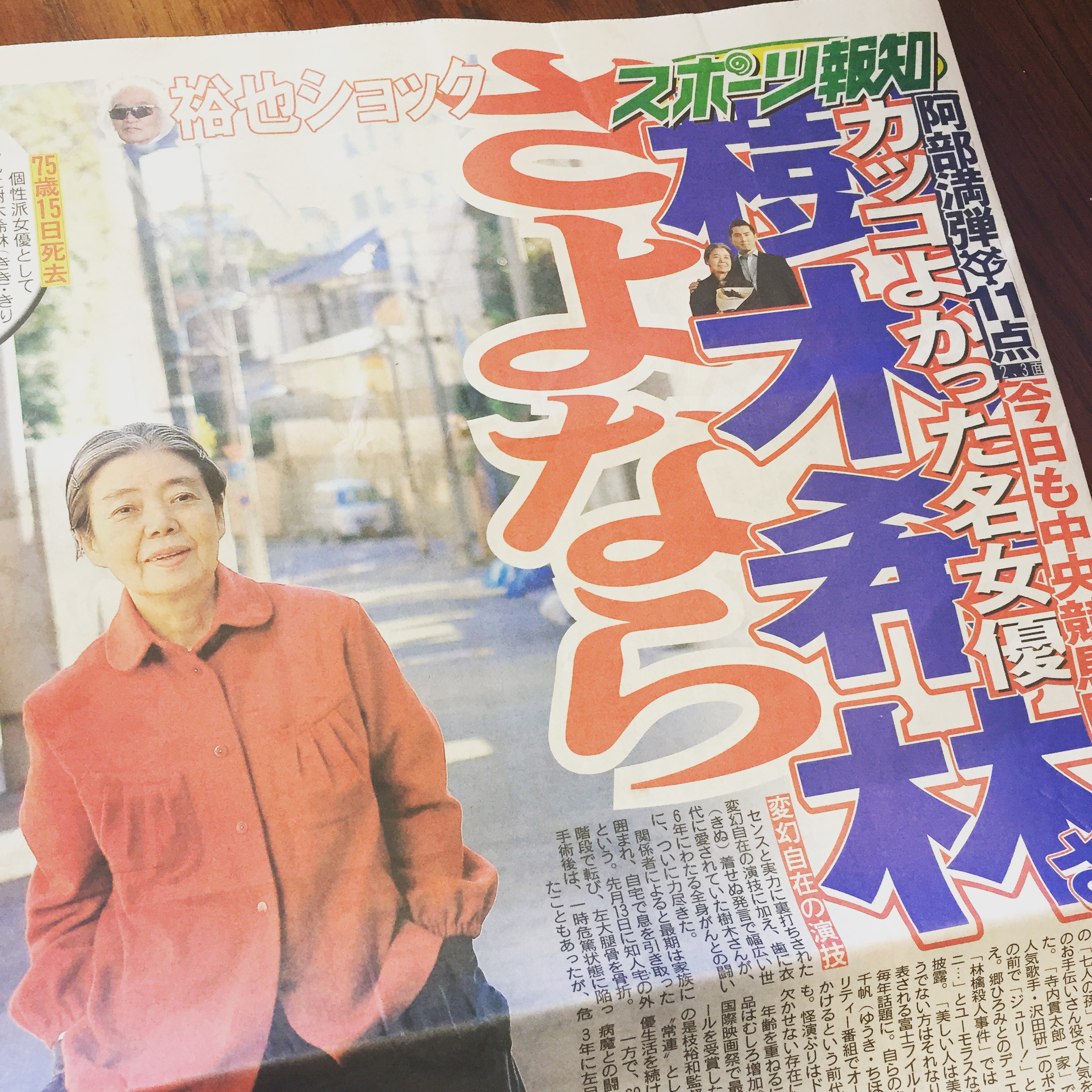 今日の一面は樹木希林さんのこと。