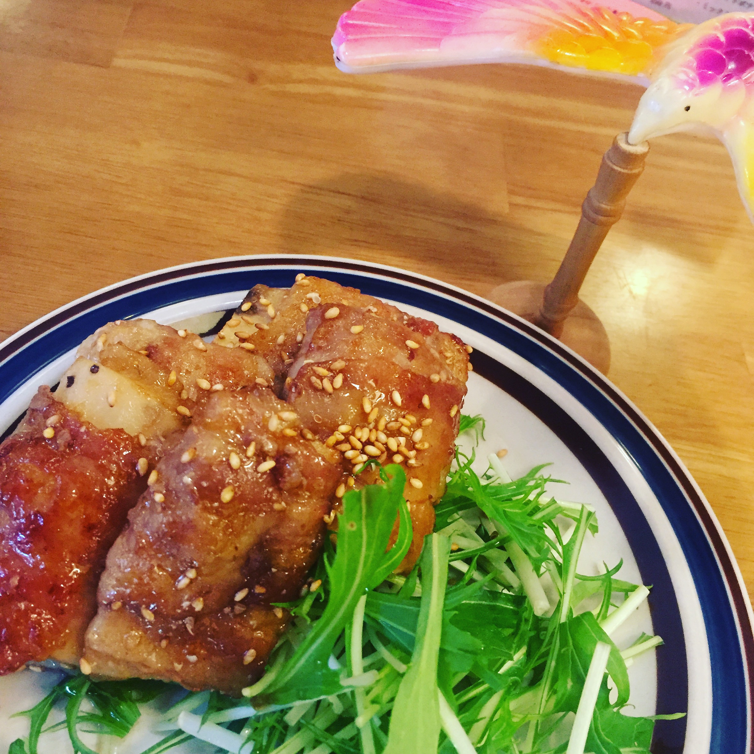 今日は長芋を巻いて照り焼きにしました