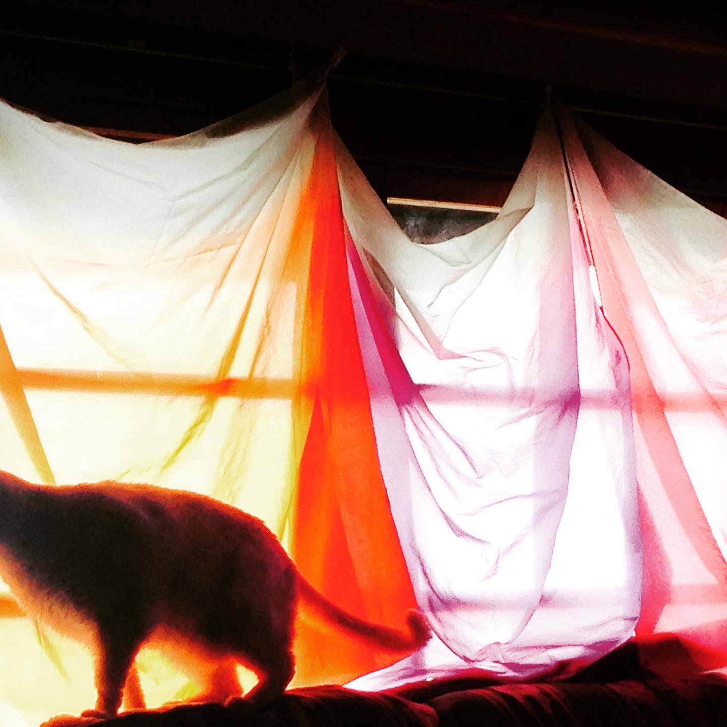 最近、黒猫がトトの下でのんびりしてる。