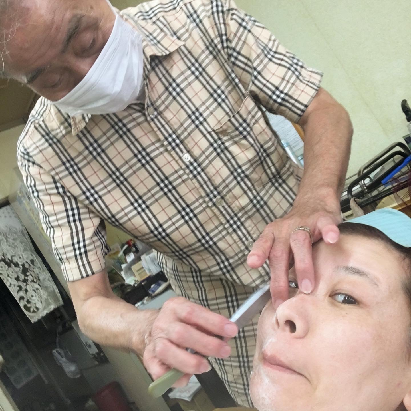 昭和の理容院で初の顔剃り。