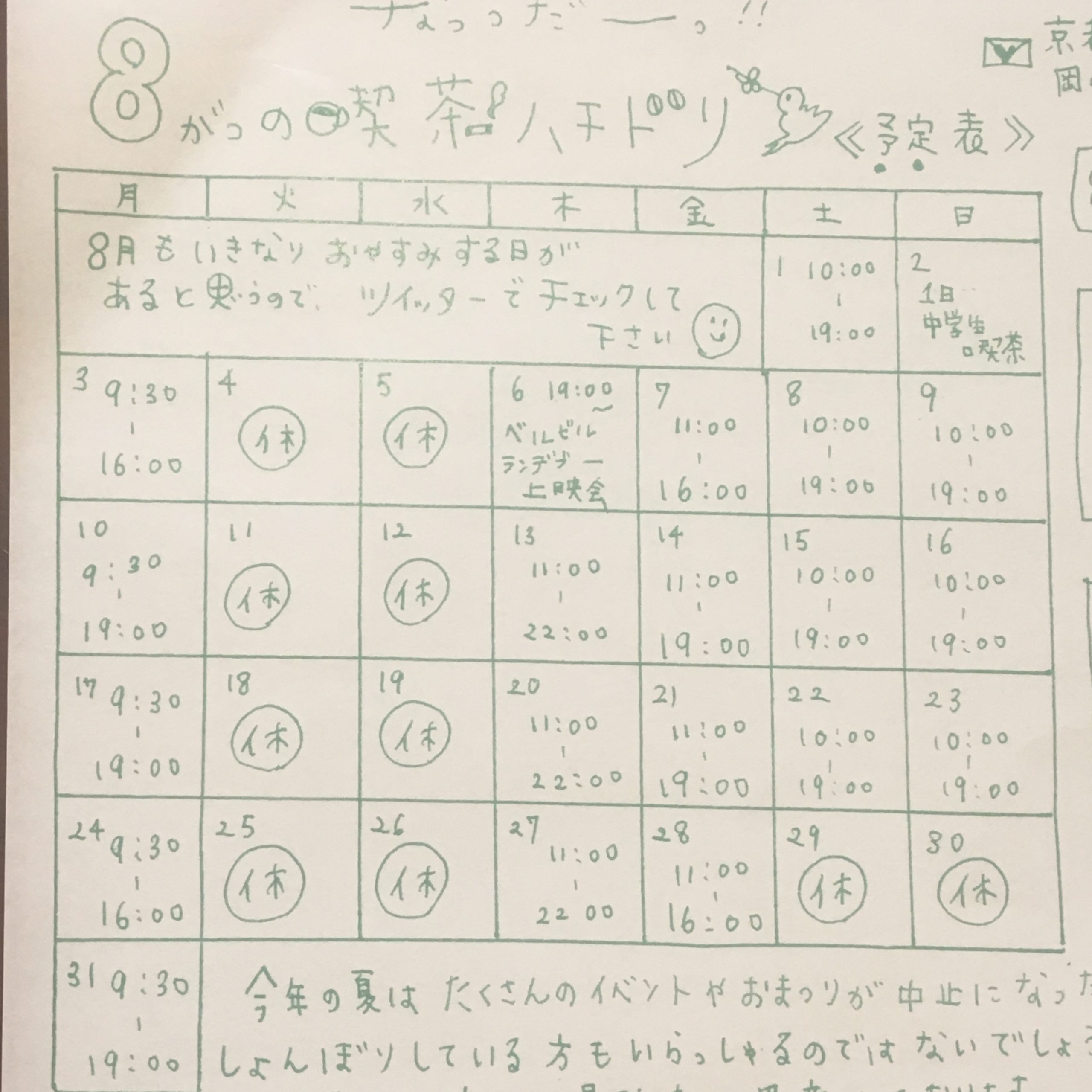 どこかでおやすみする日があるとおもいますので、Twitterで確認してくださいね