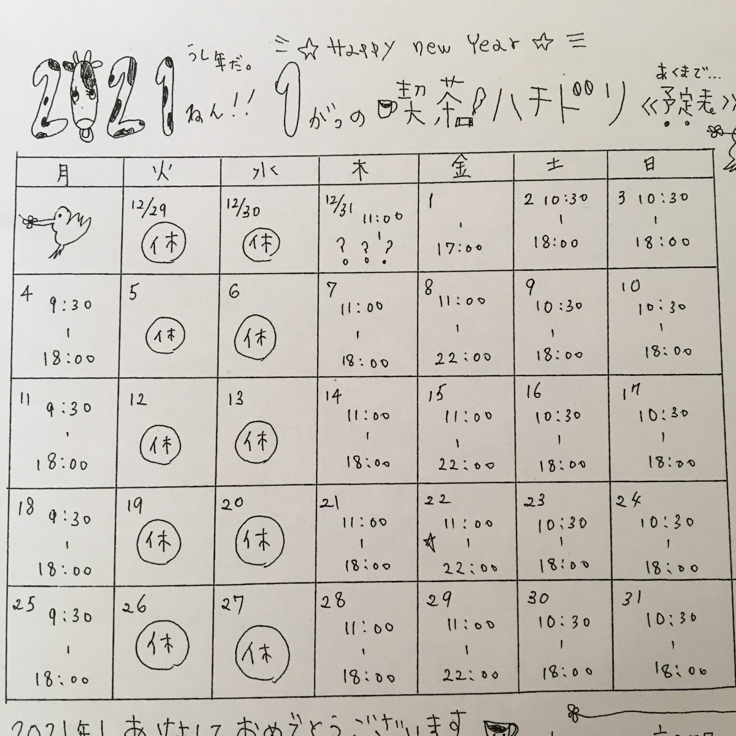 1月の予定