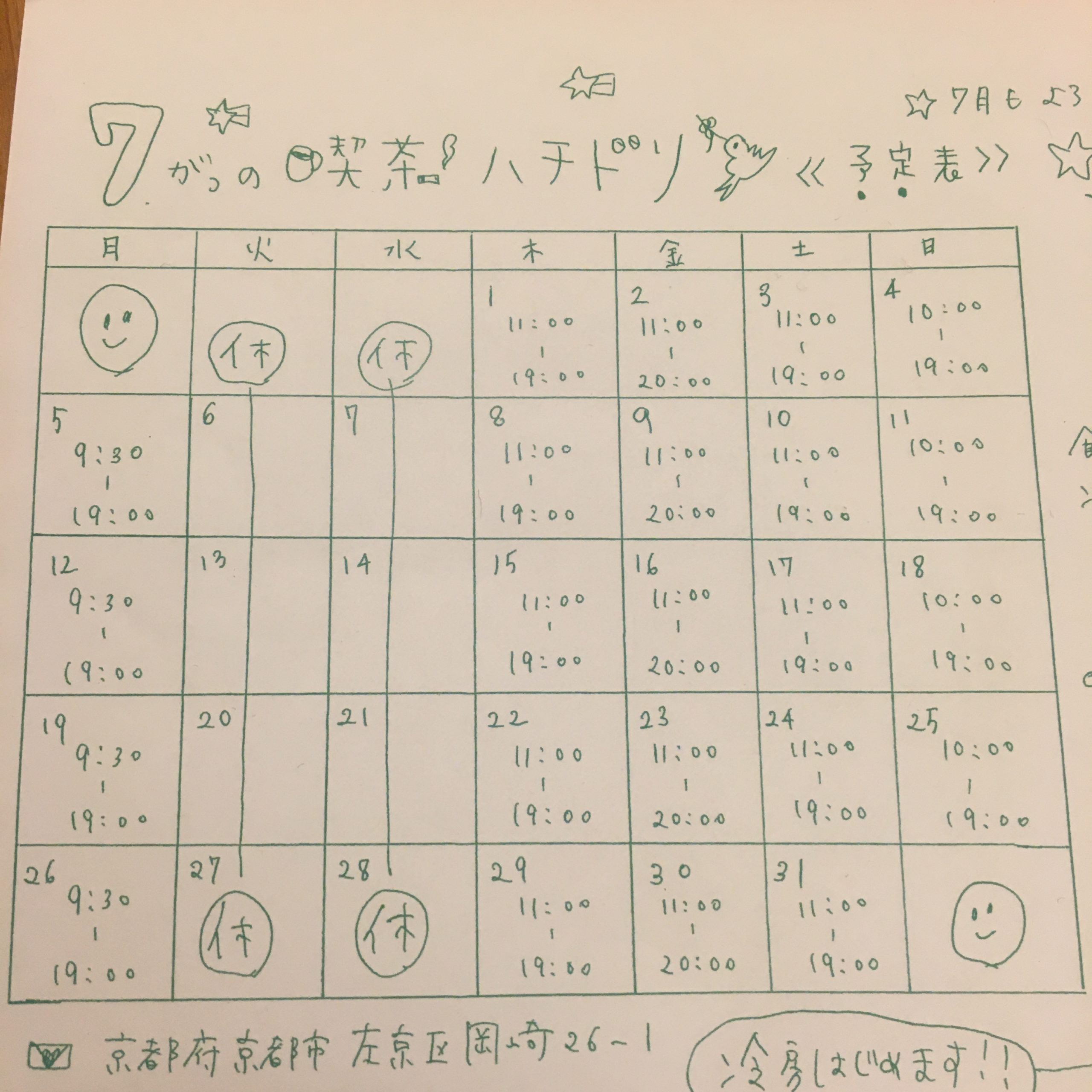 7月の予定です